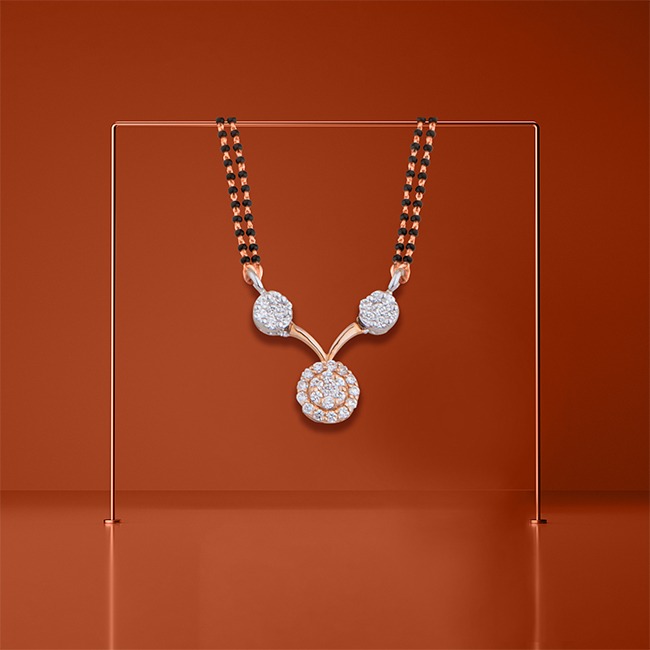 A divine thread of love, glistening in the beauty of gold and black beads. A union made to last forever, locked by the ever-shining diamonds. The satin touch of the rose is so pure, just as the bond of a husband and a wife. Look inside this mangalsutra, which entice your eyes and mind.