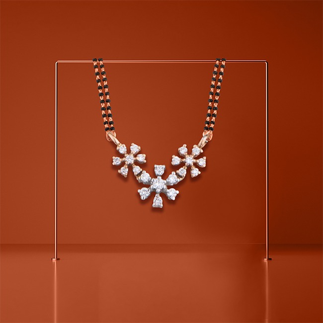 A divine thread of love, glistening in the beauty of gold and black beads. A union made to last forever, locked by the ever-shining diamonds. The satin touch of the rose is so pure, just as the bond of a husband and a wife. Look inside this mangalsutra, which entice your eyes and mind.