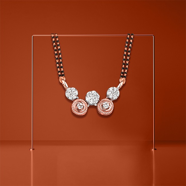 A divine thread of love, glistening in the beauty of gold and black beads. A union made to last forever, locked by the ever-shining diamonds. The satin touch of the rose is so pure, just as the bond of a husband and a wife. Look inside this mangalsutra, which entice your eyes and mind.