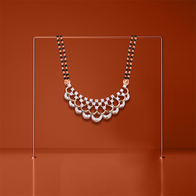 A divine thread of love, glistening in the beauty of gold and black beads. A union made to last forever, locked by the ever-shining diamonds. The satin touch of the rose is so pure, just as the bond of a husband and a wife. Look inside this mangalsutra, which entice your eyes and mind.