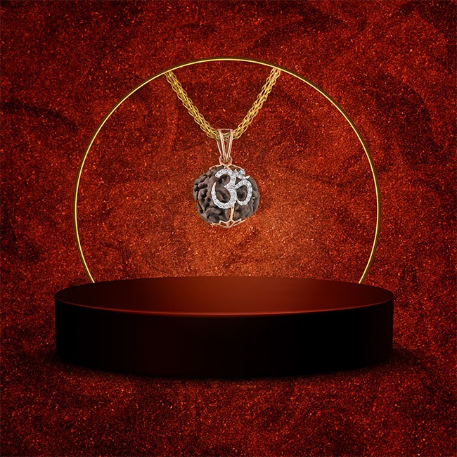 Type of Product: Pendant Serial Number of Product: PN00107 Gender: Male Product Code: GP-1822 Stone: DIAMOND, RUDRAKSH Stone Shape: Round Approx Diamond Weight,Stone weight (Carat): 0.280,13.45 No Of Diamonds: 27 Metal Type: Gold Gold Weight (g): 2.150 Metal Colour: ROSE Note: The pendants are sold individually without the chains. The price listed next to the pendant is only for the pendant. Chains can be customised to meet your unique requirements; after purchasing a pendant, a call with the staff will be scheduled. Disclaimer: Product colour may slightly vary due to photographic lighting sources or your monitor settings.